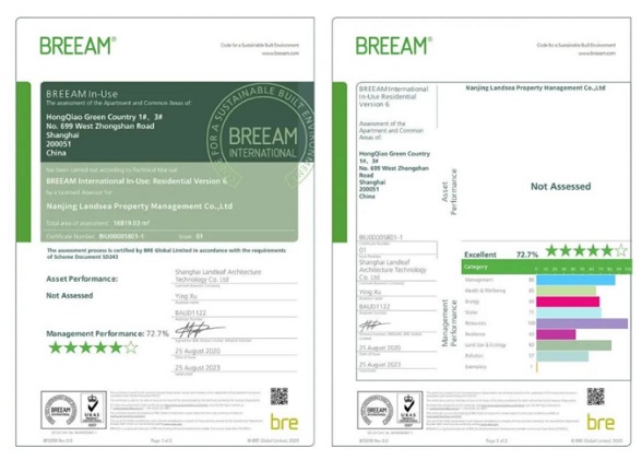 朗詩虹橋綠郡BREEAMIn-UseV6認證證書