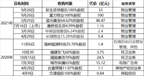 9月20日,碧桂園服務剛剛宣布以不超過100億元的代價收購富力物業。截至2020年12月31日,富力物業管理的552個項目位于中國26個省、自治區、直轄市的102個城市,總在管建筑面積為6940萬平方米,其中住宅物業的在管建筑面積為5810萬平方米,商業物業的在管建筑面積為1120萬平方米。
