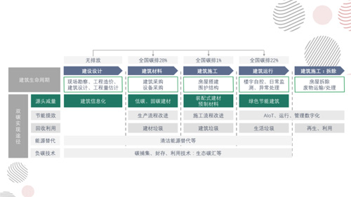 過去一年,在雙碳目標的背景下,高能耗、高排放的房地產行業迎來了一場綠色大考。建筑行業是實現碳中和的重要場景,根據中國建筑節能協會發布的《中國建筑能耗研究報告(2020)》,2018年全國建筑全過程碳排放總量49.3億噸,占全國碳排放比重的51.3%,其中建筑生產階段碳排放27.3億噸,建筑運行階段21.1億噸。未來,建筑領域全產業鏈將發生巨大變革,減碳技術及材料的大范圍推廣也將衍生出新的投資機會。