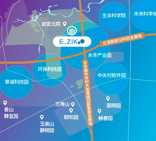 E_ZIKOO智慧谷位于中關村科學城北區,北京自貿區科技創新片區,交通便捷,可快速通達京新高速(G7)、京藏高速(G6)、地鐵16號線永豐站。