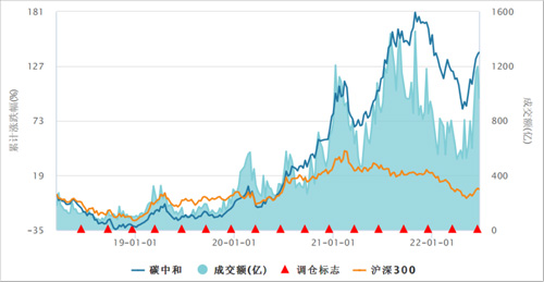 在證券市場,碳中和助推相關概念股交易增長,吸引二級市場資金流入,適量提前為國家碳市場發展儲備了資本資源。從2020年中開始,萬得數據監測的碳中和指數開始超越滬深300指數一路上行。