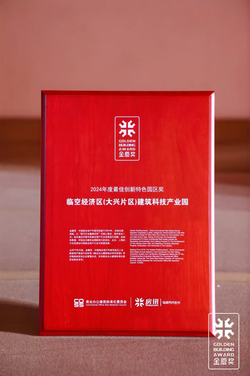 2024年12月11日,北京新航城發展公司受邀參加中國寫字樓產業園發展論壇第21屆年會及2024金廈獎·中國商業地產年度評選頒獎盛典,國際航空總部園項目其園區特色產業平臺-臨空區建筑科技產業園榮膺2024年度最佳創新特色園區獎。