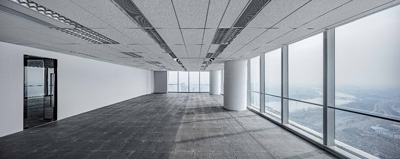 標準層的平層建筑面積約為2200平方米,劃分為11個單元,31和36層有露臺設計,整層使用率約70%。交付標準為公共區域精裝修、辦公區吊頂、白墻、網絡地板。我們的標準層非常通透,2.9米的凈高加上落地窗無遮擋的全景采光,讓入住企業的辦公體驗非常舒適。處于安全考慮和辦公企業的自然風換氣需求,在空調系統提供新風供給外,我們還在落地窗處采用了可開啟的通風器設置,以提供自然風對流的效果。根據核心筒的位置,每層分設有一套男女衛生間,其中女4男3+3的配置,并配備一個獨立的茶水間,并且25層起每層還另設有一個獨立的行政衛生間。