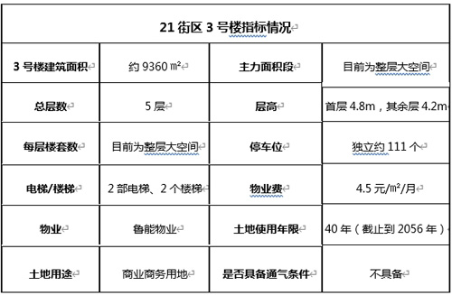 2、泰山7號21街區(qū)3號樓:泰山7號21街區(qū)是容積率僅2.5的獨棟優(yōu)質(zhì)辦公樓,北側約200米為大型商業(yè)綜合體,龍湖公園天街、吾悅廣場、大悅城等商業(yè)近在咫尺,距渝北區(qū)全民健身中心直線距離400米,距輕軌5號線及10號線中央公園西站步行距離1分鐘,交通便捷。21街區(qū)共計3棟樓,已整體竣工,其中1、2號樓已由重慶電力北洲公司定制。(指標附后)