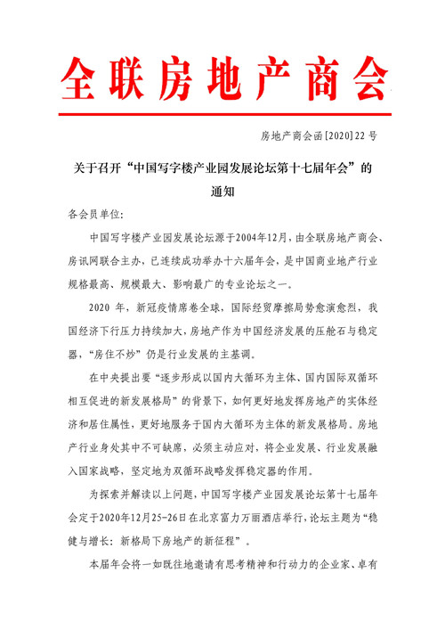 《通知》顯示,中國寫字樓產業園發展論壇源于2004年12月,由全聯房地產商會、房訊網聯合主辦,已連續成功舉辦十六屆年會,是中國商業地產行業規格最高、規模最大、影響最廣的專業論壇之一。