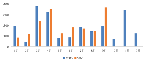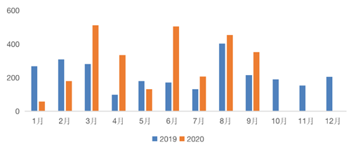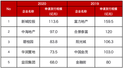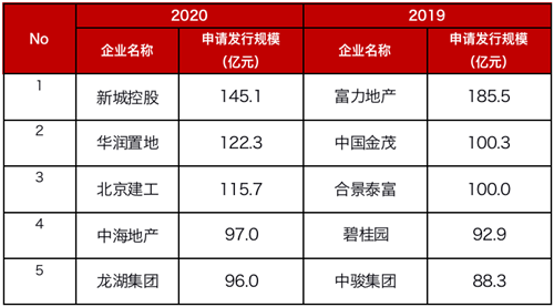 房企新申請ABS發(fā)行規(guī)模(億元)2019VS2020