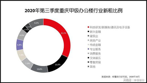 1. 以在線教育、直播為代表的科技互聯網產業加速擴張,成為市場關注焦點。據統計,2020上半年國內在線教育行業融資總額逾143億元,超過2019全年融資額,疫情后行業用戶數突破3億。本季,猿輔導、作業幫、掌門一對一等業內頭部企業在渝積極擴張,釋放數千甚至上萬平方米的辦公需求,且青睞解放碑、江北嘴等成熟商務區。此外據宏觀數據顯示,信息傳輸、軟件和信息技術服務業營業收入在上半年逆勢同比增長27.4%。在產業轉型的新經濟周期下,重慶辦公樓市場或迎新風口。