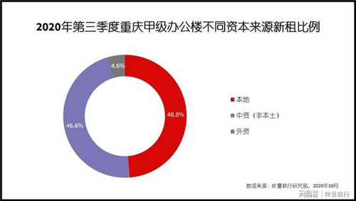 據仲量聯行統計,截至2020年第三季度末,在重慶甲級辦公樓Top50租戶中,本地龍頭企業承租數量達13個;在全市甲級辦公樓中,高達38.7%的面積為本地企業承租。然而大部分本地企業規模相對較小,租金敏感的特征驅動他們在辦公選址時青睞高性價比樓宇。伴隨本地中小企業經濟活力回升,本季新增辦公需求中,本地企業活躍度超過中資(非本土)企業,兩者占比分別為48.8%和46.6%。其中,來自老舊樓宇的本土企業辦公升級需求主導二級租賃市場,緩解上半年因疫情導致租戶退租、轉租率下滑的局面。