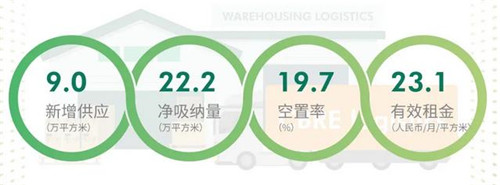 第三季度,市場錄得萬緯龍泉物流園交付,新增供應9萬平方米。本地夯實的消費基礎繼續助力物流業加速復蘇,季內倉儲租賃需求回暖態勢明顯,凈吸納量錄得22萬平方米,環比大幅上漲65.9%,與去年同期基本持平,居全國第一。相應地,市場空置率環比下降3.5個百分點至19.7%。租金方面,上半年率先以價換量的項目取得一定成效,并帶動這場價格戰的范圍繼續擴大,故而全市高標庫平均租金環比下跌1.4%,至每月每平方米23.1元,但跌幅收窄0.3個百分點。