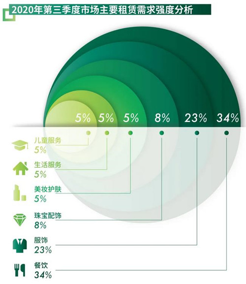 2020年三季度,西安零售物業市場迎來3個項目入市,分別是曲江板塊的西安量子晨,城東板塊的U Plaza城開優享+,以及西咸板塊的灃西吾悅廣場,新增體量15.5萬平方米,季度末全市零售物業總體量為596萬平方米。包括賽格國際購物中心、曲江大悅城、MOMOPARK、曲江創意谷等多個優質項目加快品牌更新速度,開出多家新店,助力三季度凈吸納量轉正,季末錄得全市優質零售物業凈吸納量16萬平方米,零售物業空置率環比下降0.3個百分點至6.7%。各商圈租金保持平穩,季末購物中心首層平均租金錄得每月每平方米270.5元,同樣本比環比持平。