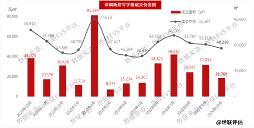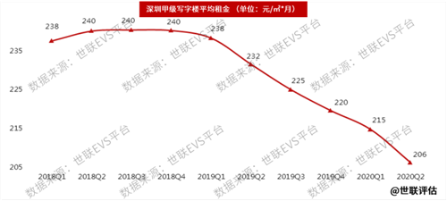 深圳商業性辦公用地供應過剩,近年寫字樓供應量足以滿足未來十年的需求,空置率及租金下跌幅度都位居四大一線城市之首。