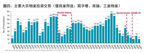 在本地、內地、海外三類投資者中,內地投資者需求相對較為平穩,主導了本季半數大額成交,是市場的主力;各類物業中,工業物業最為活躍,全棟工業大廈買賣有不少出現。商鋪市場受疫情打擊,交易量持續為零。鑒于市場氣氛依舊低迷,今年大宗交易成交或創十年來的最低。