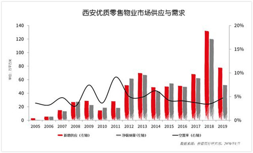 從需求端來看,伴隨經(jīng)濟(jì)增速放緩,消費(fèi)者的收入預(yù)期改變,進(jìn)而改變當(dāng)期消費(fèi)支出及結(jié)構(gòu)。西安百貨業(yè)在調(diào)整中實(shí)現(xiàn)優(yōu)勝劣汰,部分百貨商場(chǎng)停業(yè)。零售物業(yè)市場(chǎng)整體需求仍保持穩(wěn)健,亮點(diǎn)紛呈。