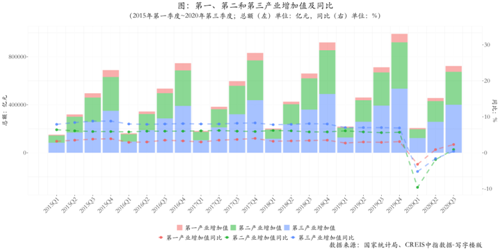 三季度,國內經濟增速由負轉正,同比增長0.7%。9月份,商務活動指數繼續上升,信息傳輸、軟件和信息技術服務業增速最快,制造業PMI與非制造業商務活動指數雙雙回升。分行業來看,前三季度,金融業以及信息傳輸、軟件和信息技術服務業增長較快,增加值增速分別為7.0%和15.9%,合計拉動GDP增長1.3個百分點。服務業景氣繼續擴張。