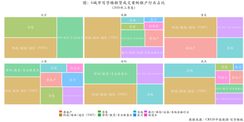2020年三季度,隨著國內經濟主要經濟指標不斷改善,發展動能增強,景氣度持續提升,國內部分城市寫字樓租賃和投資市場活躍度有所回升,租金整體企穩,空置率小幅上升。頭部互聯網企業對寫字樓市場拉動效應明顯。投資市場方面,商業地產各個板塊的大宗交易各有斬獲,寫字樓仍然占據大宗交易成交額的最大份額。