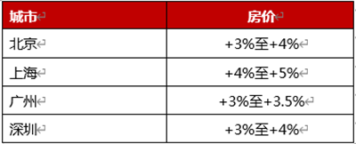 · 預計中國內(nèi)地住宅市場一線城市的房價漲幅將在3%-5%之間,超過三四線城市