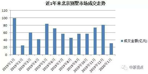 統計數據顯示,1月北京普宅成交市場環比量跌價穩、別墅市場則量價齊跌。北京別墅成交額31.02億元,環比2019年12月成交額下跌61%,同比2019年1月成交額下挫69%。共成交214套,環比減少273套,占1月新房市場總套數的7%,份額繼續下跌。成交均價47626元/平方米,價格連續3個月上漲后下挫,環比2019年12月價格下跌7175元/平方米,套均價為1450萬元/套,環比2019年12月減少204萬元/套。