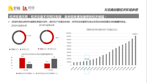 在經濟環境層面,中國(2019年)經濟總量已接近100萬億元,經濟底蘊之雄厚今非昔比,2018年相比2003年城鎮化率提升19%,國內生產總值達6.9倍,經濟拉動貢獻率完成從投資拉動到消費拉動的顛覆性轉變。再結合內外部環境來看,非典時期城鎮化需求、人口紅利逐步釋放,經濟處于高度上升期,而當前正處于轉變發展方式、優化經濟結構、轉換增長動力的三大戰略轉型期,經濟增速總體放緩。