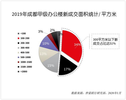 以企業生命周期視角分析,初創、小微企業抗風險能力較低,受疫情影響較大,龍頭企業繼續引領市場需求,二級租賃市場承壓前行。本次疫情扮演著產業洗牌過程加速器的作用,因此地方政府如何引導、扶持初創及小微企業成長,將影響辦公樓市場尤其是二級租賃市場需求的穩健性。在華西區域,成都、重慶、西安甲級辦公樓需求均有超過五成比例來自300平方米以下的中小微企業以及大型企業的小面積辦公需求。因此,小面積租戶能否撐過疫情的短期考驗對2020全年辦公樓市場走勢將產生可預見的影響。