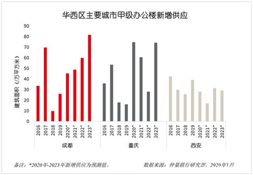 回歸辦公樓市場開發,近期項目或因消防及竣工驗收影響,或因降低租賃壓力、減少疫情期間增加物業運營管理成本支出的考量,短期市場會出現一兩個季度延期交付的可能性。整體而言,商業地產開發周期較長,短期因工程進度導致的延誤對遠期項目的開發節奏影響有限,融資成本較高的開發企業將承受更大的現金回籠壓力。而成都、重慶、西安等西部重要城市的投資、消費、人才引入、經濟基本面依然向好,商業地產開發商對華西市場的投資仍充滿信心,2022-2023年三大城市的甲級辦公樓將再次迎來供應高峰。