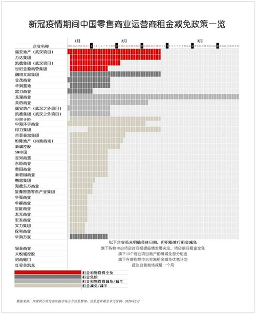 “唇齒相依,共度難關”,危機中頻現中國零售運營商的責任與擔當。對于大型商家而言,租賃面積大進而房地產成本高,且公司規模導致運營成本高企,對疫情導致的市場變化難以快速調整。對于個體、小規模經營者而言,較低的抗風險能力或已無法扛過短期入不敷出的債務風險。而商場與商戶唇齒相依,國內數百家零售物業運營商實行免租或減租的政策,與商家共度難關。租金減免政策能在短期內一定程度緩解商家的經營困難,然而這部分經營性壓力并未消除,只是轉嫁至運營商一方,風險共擔。