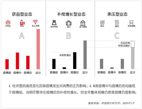 B類補償增長型業態:在疫情期間的需求被積壓,結束后消費力將集中釋放,短期消費市場或出現補償式增長,但全年數據仍受疫情負面影響。代表業態:時尚零售、旅游、線下教育、大健康產業等。
