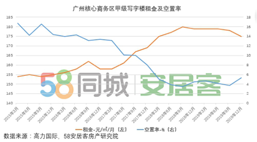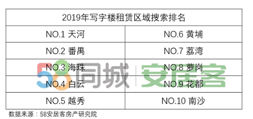 值得注意的是,58同城、安居客《2019年廣州寫字樓現(xiàn)狀報(bào)告》報(bào)告顯示,與核心商務(wù)區(qū)寫字樓吸納量大幅下滑形成對(duì)比,2019年廣州全市寫字樓線上搜索量?jī)H下滑6.1%,搜索總量逼近上海及深圳。這說明,廣州的中小企業(yè)活躍,寫字樓租賃需求有較好支撐,部分需求或受制于核心商務(wù)區(qū)較低的空置率未能釋放。