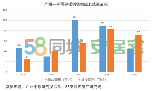 在寫字樓銷售層面,58同城、安居客《2019年廣州寫字樓現(xiàn)狀報(bào)告》顯示,2019年廣州一手寫字樓供應(yīng)量為1849套,共約44萬(wàn)㎡。寫字樓成交呈現(xiàn)外移趨勢(shì),魚珠板塊和白鵝潭板塊熱度提升。外圍四區(qū)中,花都迎賓大道板塊逆勢(shì)崛起,承包了廣州全年約22%的交易量。