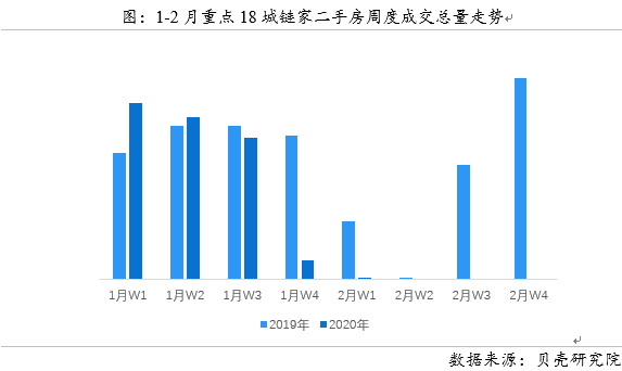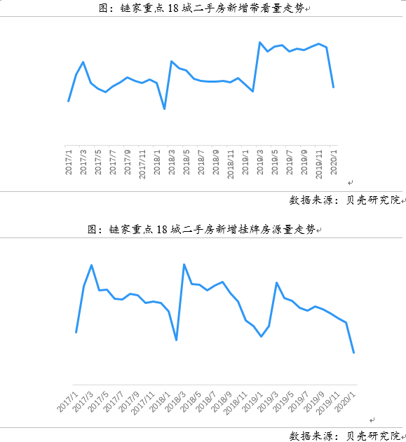受春節假期疊加新型冠狀病毒疫情影響,2020年1月重點城市二手房市場成交量大幅減少,降幅超過去年年末價格回暖的情況有所減弱,新增需求與供給均大幅回落,房源成交周期進一步拉長。