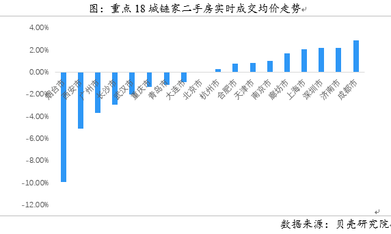 (鏈家重點18城包括:北京、上海、深圳、廣州、大連、天津、廊坊、西安、濟南、青島、煙臺、武漢、南京、合肥、杭州、長沙、重慶、成都。)