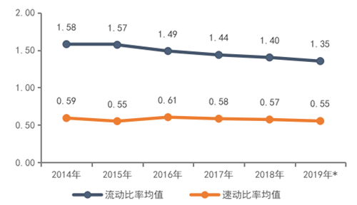 圖 百?gòu)?qiáng)代表企業(yè)2014-2019年流動(dòng)比率與速動(dòng)比率均值
