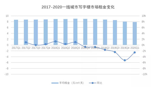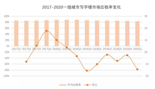 今年一季度一線城市寫字樓單項目出租率和租金最大降幅超超35%,最大升幅超20%,項目出現(xiàn)明顯分化。