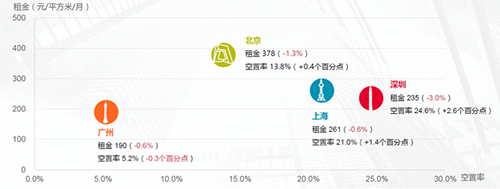 延續(xù)上年走低態(tài)勢,甲級寫字樓租金季度下滑3%