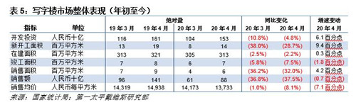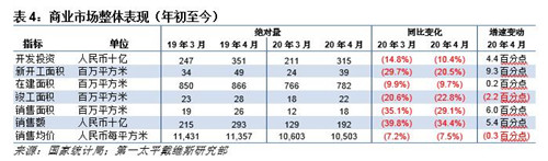 房地產(chǎn)投資氣氛亦有改善,4月投資額同比增加7.0%至1.11萬億元,受此提振,1-4月累計投資額同比減少3.3%,跌幅較1-3月的7.7%顯著收窄。