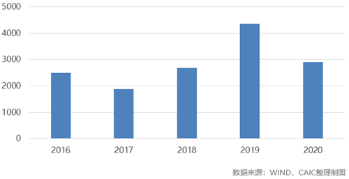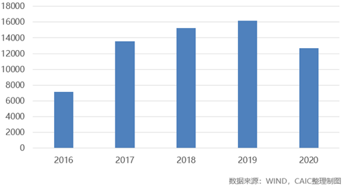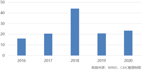 2016-2020年5月期內地房企海外債總額(億美元)