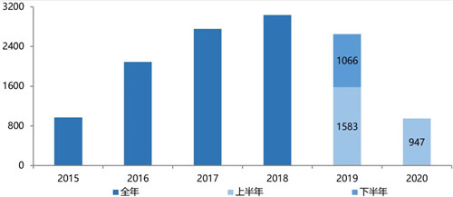 2015-2020年中國內(nèi)地大宗市場成交金額(億元)