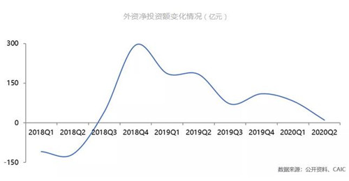 為遏制境外輸入病例的快速上升態(tài)勢,外交部聯(lián)手移民局于今年 3 月 26 日發(fā)布公告,自 3 月 28 日起暫停外國人持目前有效來華簽證和居留許可入境。這一“封關”政策致使外資機構(gòu)決策層無法來華,投資決策滯后,導致在上半年中美貿(mào)易摩擦降溫的情況下,外資投資總額依然不高。2020 年上半年,內(nèi)資占比高達 74% ,主導了大宗市場走向;外資占比僅為 26% 。