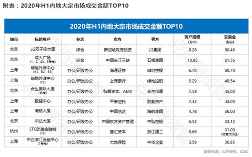 2020 年上半年,新加坡元對人民幣匯率持續(xù)走高,以人民幣計價的中國內(nèi)地物業(yè)資產(chǎn)對新加坡投資機構(gòu)而言收購成本逐步走低。以 GIC(新加坡政府投資公司)為首的新加坡資本大舉加倉,其中 GIC 以 80.46 億元收購 LG 雙子座大廈創(chuàng)上半年單筆成交金額最高紀錄。