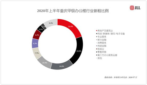 · 房地產(chǎn)建筑業(yè)長期主導重慶辦公需求。上半年,重慶甲級辦公樓新租面積中20.0%來自房地產(chǎn)建筑行業(yè),其中自用與租賃需求并存。伴隨成渝雙城經(jīng)濟圈鼓勵重慶與成都兩市相向發(fā)展,未來高新區(qū)、西部科學城將進入集中開發(fā)階段,帶動房地產(chǎn)投資市場發(fā)展。房地產(chǎn)建筑行業(yè)仍將繼續(xù)在后疫情時期成為重慶辦公需求四大支柱之一。