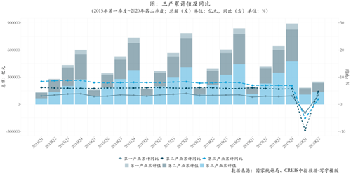 二季度分產(chǎn)業(yè)看:第一產(chǎn)業(yè)增加值15867億元,增長(zhǎng)3.3%,第二產(chǎn)業(yè)增加值99121億元,增長(zhǎng)4.7%,第三產(chǎn)業(yè)增加值135122億元,增長(zhǎng)1.9%。從環(huán)比看,經(jīng)調(diào)整季節(jié)因素后,二季度GDP環(huán)比增長(zhǎng)11.5%,一季度為下降10.0%。