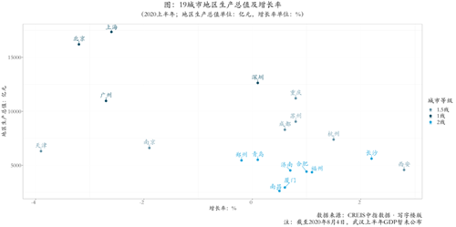 整體:2020上半年地區(qū)生產(chǎn)總值前10城市為:上海、北京、深圳、重慶、廣州、蘇州、成都、杭州、南京、天津。其中,上海、北京、深圳穩(wěn)居前三,重慶首次超越廣州位居第四。