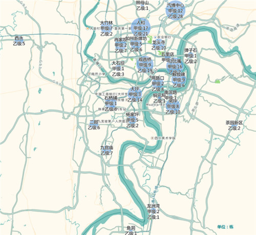 截至2020年二季度,重慶寫字樓采集數量已達到280棟,其中甲級寫字樓103棟,乙級寫字樓177棟,涵蓋了主城各大主流商圈,覆蓋范圍未來將不斷增加。重慶甲乙級寫字樓分布較為集中,主要分布在解放碑、江北嘴、觀音橋、汽博中心、人和商圈。汽博中心、人和商圈辦公密集,調研了近40棟寫字樓數量,金貿時代、線外新境界以及“星座”系列實現全覆蓋;作為政府重點打造的國家級戰略金融中心,江北嘴寫字樓品質以高端為主,甲級寫字樓比例遠遠高于其他主流商圈,占比近七成。