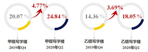 甲級寫字樓空置率高達24.84%,空置率明顯上漲