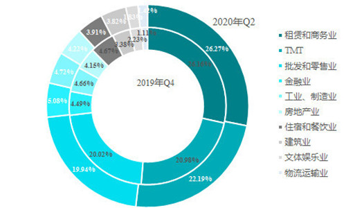 圖:2020年Q2重慶寫字樓租戶行業分布及變化