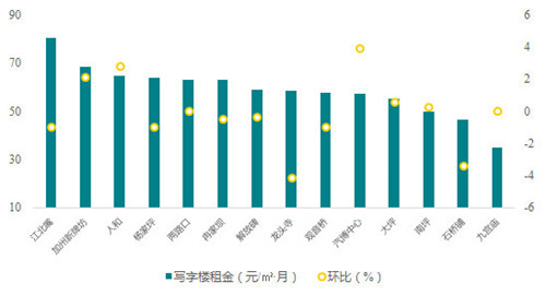 圖:2020年Q2重慶重點商圈甲乙級寫字樓租金