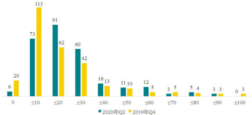 圖:2020年Q2重慶甲乙級寫字樓空置率分布
