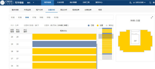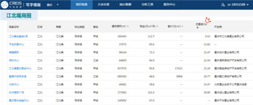 當前重慶寫字樓空置率21.18%,這一空置率水平與同等級城市相比仍處高位,尤其是甲級寫字樓,寫字樓空置率回升顯著。解放碑、江北嘴寫字樓項目集中,市場需求跟不上,導致區域內寫字樓空置率處于高位。