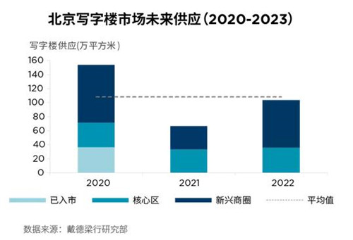 2020-2023年,北京寫字樓市場共計將有約324萬平方米新增供應入市,其中36.2萬平方米已于上半年完成入市。受新冠肺炎疫情的影響,預計下半年會有部分項目推遲至2021年入市,同時參考2008年奧運會帶來的停工影響前例,預計部分項目為了規避2022年冬奧會對進度的影響,會提前至2021年完工并投放市場,因此未來三年的供應量分布將較為均衡。