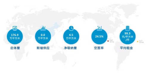 全市甲級寫字樓市場三季度甲級寫字樓市場凈吸納4.5萬平方米,空置率為24.5%,環比下降9.4個百分點。
