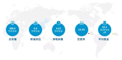 本季度全市無新增項目入市,甲級寫字樓總體量依然保持在176.9萬平方米。